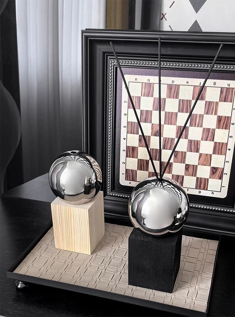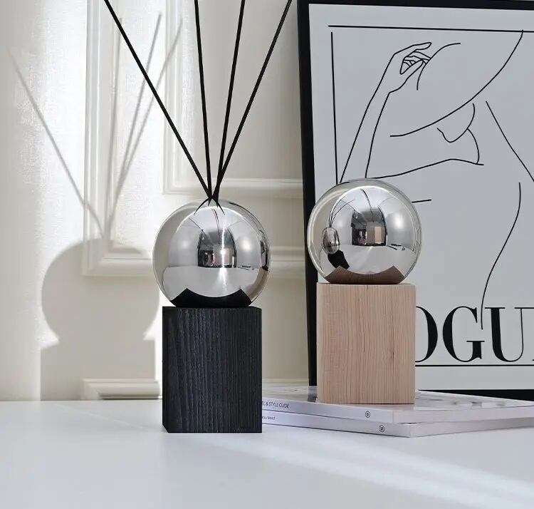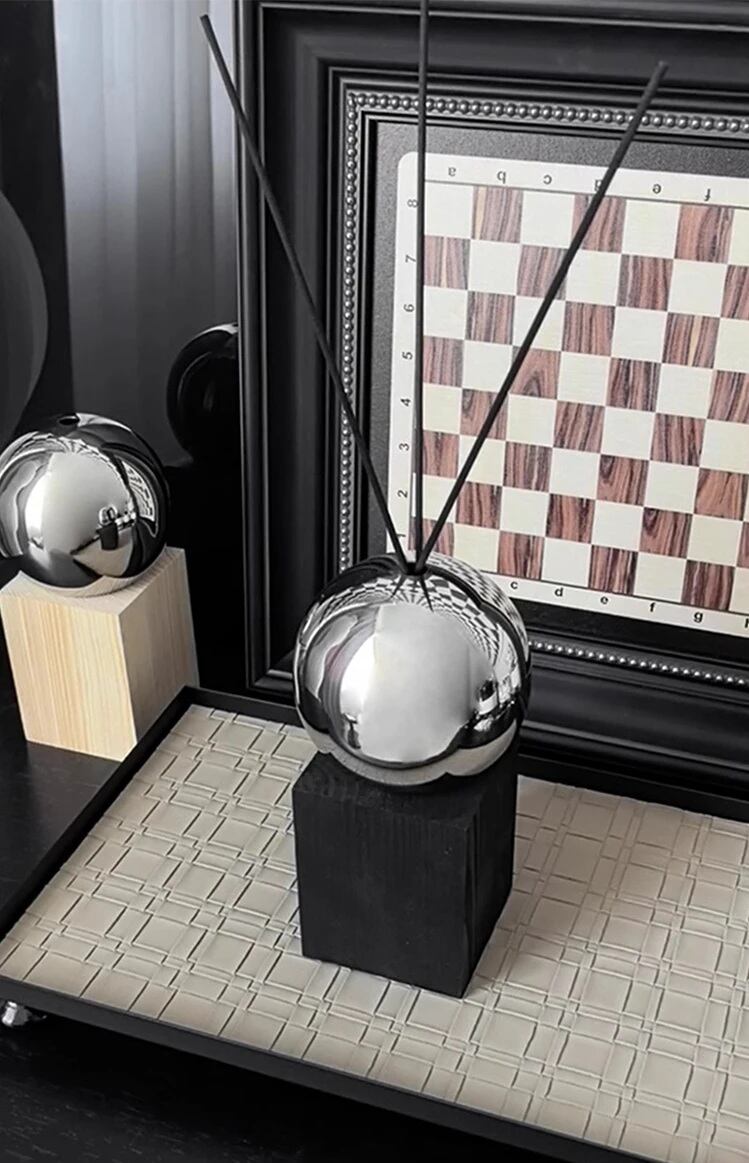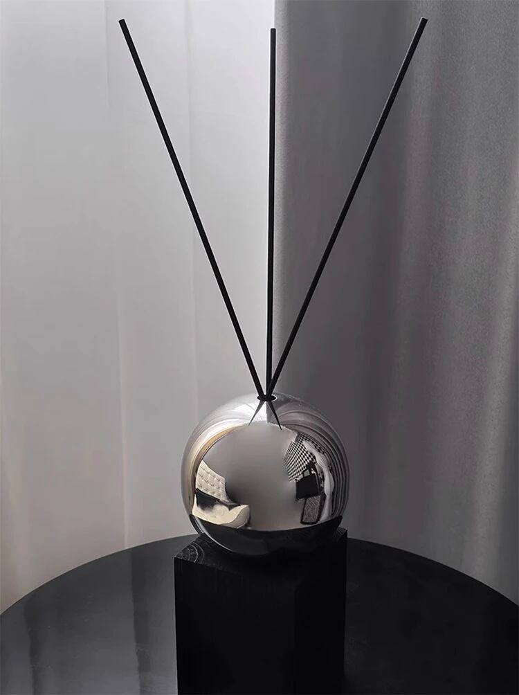 【圧倒的な存在感】: 光沢の美しい球体デザインは、香りを楽しむだけでなく、高級感のあるインテリアオブジェとしても活躍します。