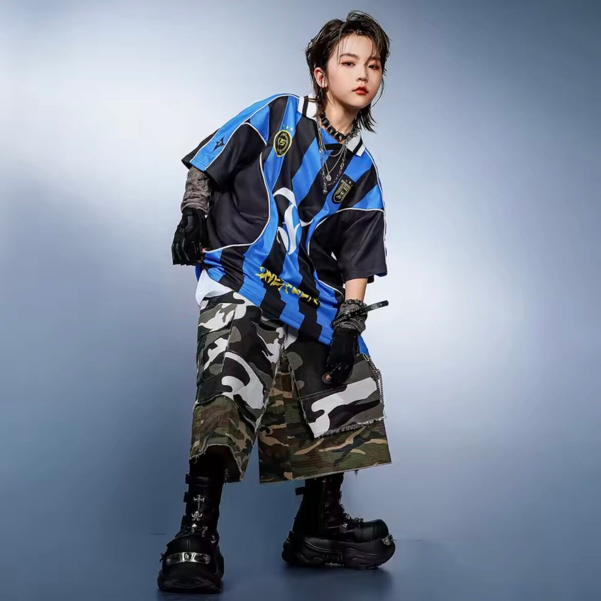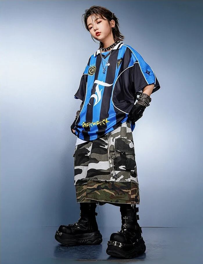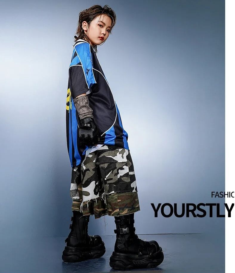 キッズ ダンス衣装 ゲームシャツ ユニフォーム 迷彩 ハーフパンツ 韓国 ストリート K-POP セットアップ ヒップホップ ブロケットコア 派手 女の子 男の子 発表会 かっこいい KD-5